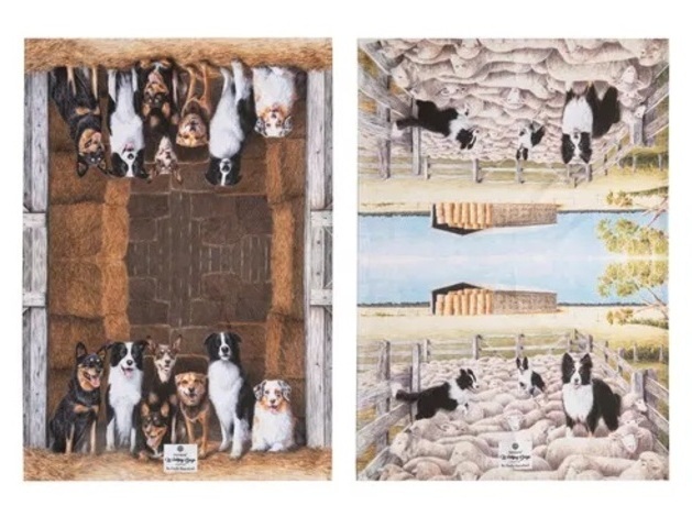 Celebrating the hardworking farm dogs out there, this set of 2 cotton tea towels makes a lovely gift for dog lovers.